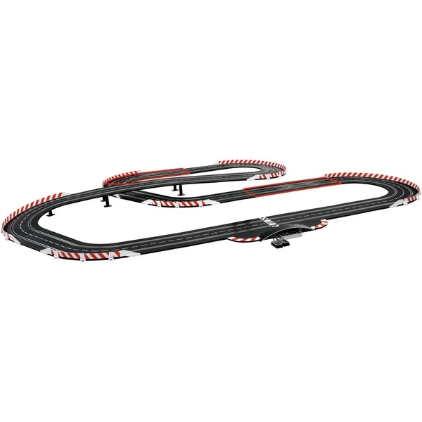 | Inhalt/Ausstattung | 2 Handregler, 4 Standardgeraden, 3 Kurven (60°), Control Unit, Doppelweiche, 4 Endstücke für Kurvenaußenrand, 20x Fahrbahnverriegelung, 10 Doppelschleifer, DIGITAL 132 Transformer, Spurwechselkurve links, außen nach innen, 3 Fahrzeuge | ||