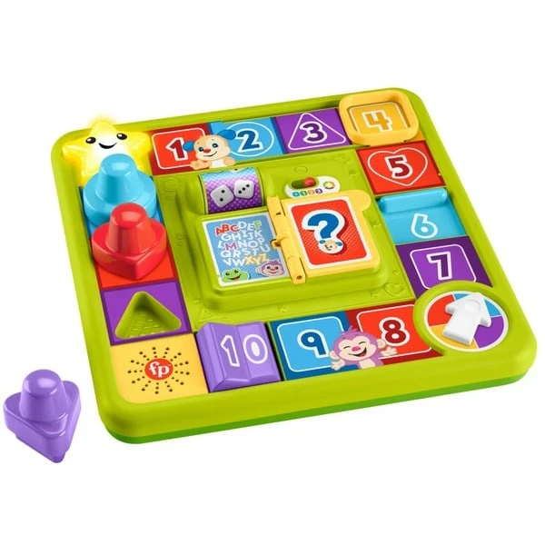 | Inhalt/Ausstattung | Interaktives Brettspiel-Spielzeug mit 3 Spielpunkten, die lustige Lichter, Musik und Lernlieder und -sätze aktivieren. 3 Smart Stages-Stufen mit über 40 Liedern, Geräuschen und Sätzen lehren Zahlen, das ABC und Formen. | ||