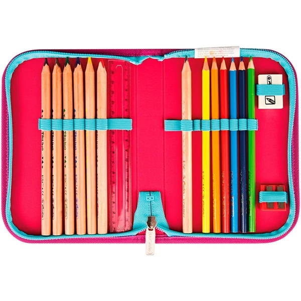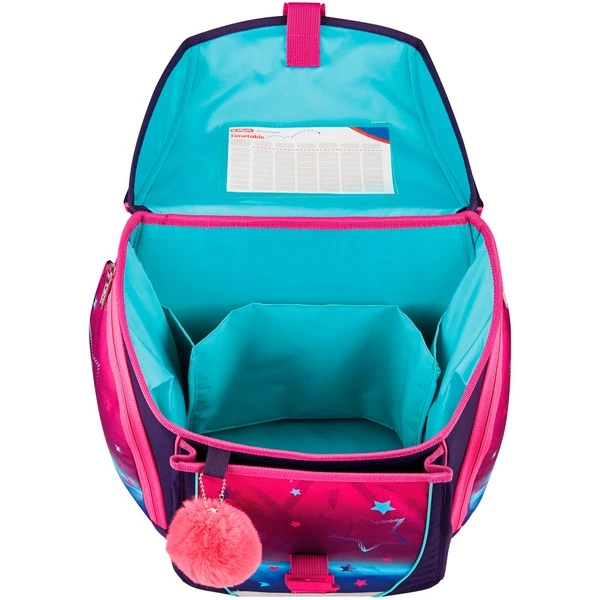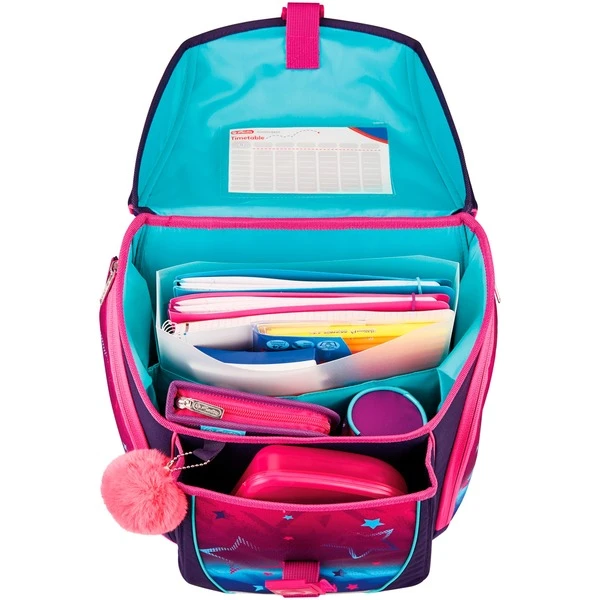 | Weitere Informationen | inkl. befülltem 16 tlg. Schüleretui, Faulenzer-Mäppchen, Sportbeutel, 2 austauschbare Applikationen | ||