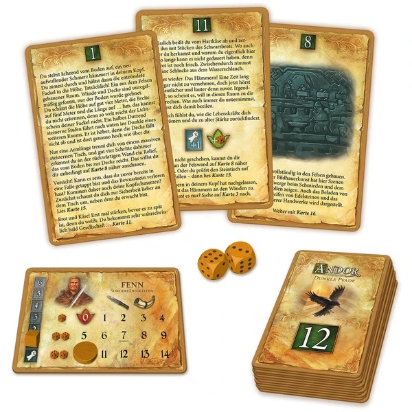 Bereit für neue Abenteuer in der fantastischen Welt Andors? Immer weiter in eine Geschichte mit ungewissem Ausgang eintauchen und spannende Herausforderungen erleben. Die Strategie des Helden oder der Heldin entscheidet, in welche Richtung die Geschichte gehen wird. Mit jeder neuen Karte kommt man in diesem Abenteuerspiel der Lösung ein wenig näher. Ganz wie in den großen Andor-Spielen spielen an Stärke und Willen eine wichtige Rolle. Anlässe diese einzusetzen gibt es mehr als genug: die finsteren Kreaturen Andors schleichen in den Schatten umher und sind zum Kämpfen bereit! Das beliebte Fantasy Rollenspiel – jetzt als einmaliges Story Abenteuer!Art.-Nr.: 1772453