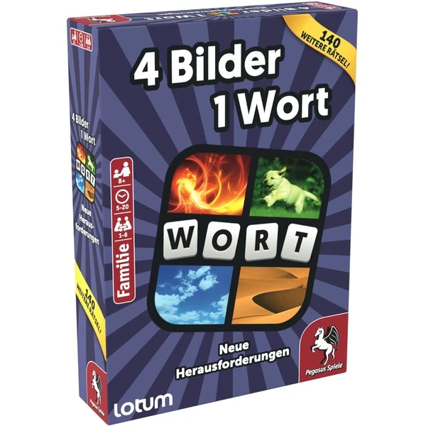 Vier Bilder haben ein Wort gemeinsam – welches ist es? Diesem Rätsel können Spieler seit 4 Bilder 1 Wort – Das Kartenspiel nicht nur in der gleichnamigen App, sondern auch gemeinsam am Spieltisch nachgehen. Mit 4 Bilder 1 Wort – Neue Herausforderungen kommen nun 140 neue Rätsel ins Spiel – für noch mehr Knobelspaß! 4 Bilder 1 Wort – Neue Herausforderungen sorgt bei Besitzern von 4 Bilder 1 Wort – Das Kartenspiel und Neueinsteigern gleichermaßen für langanhaltenden Spielspaß.Art.-Nr.: 1623051