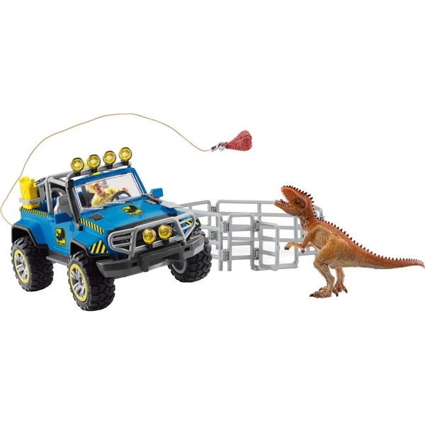 Mit dem Geländewagen kann LUIS schnell zum Außenposten fahren und dort den Giganotosaurus mit Hilfe eines dicken Fleischköders einfangen. Für den Fall, dass er während der Fahrt im Sumpf stecken bleibt, kann er mit Hilfe seiner Werkzeugkiste mühelos den Reifen wechseln oder den Geländewagen mit der Seilwinde wieder herausziehen. Der Geländewagen mit Dino-Außenposten von Schleich Dinosaurs bietet eine Vielzahl an Spielmöglichkeiten. Entdecke die gesamte Schleich Dinosaurs Welt und die spannenden Abenteuer der Colby Brüder unter www.schleich-dinosaurs.comArt.-Nr.: 1832483